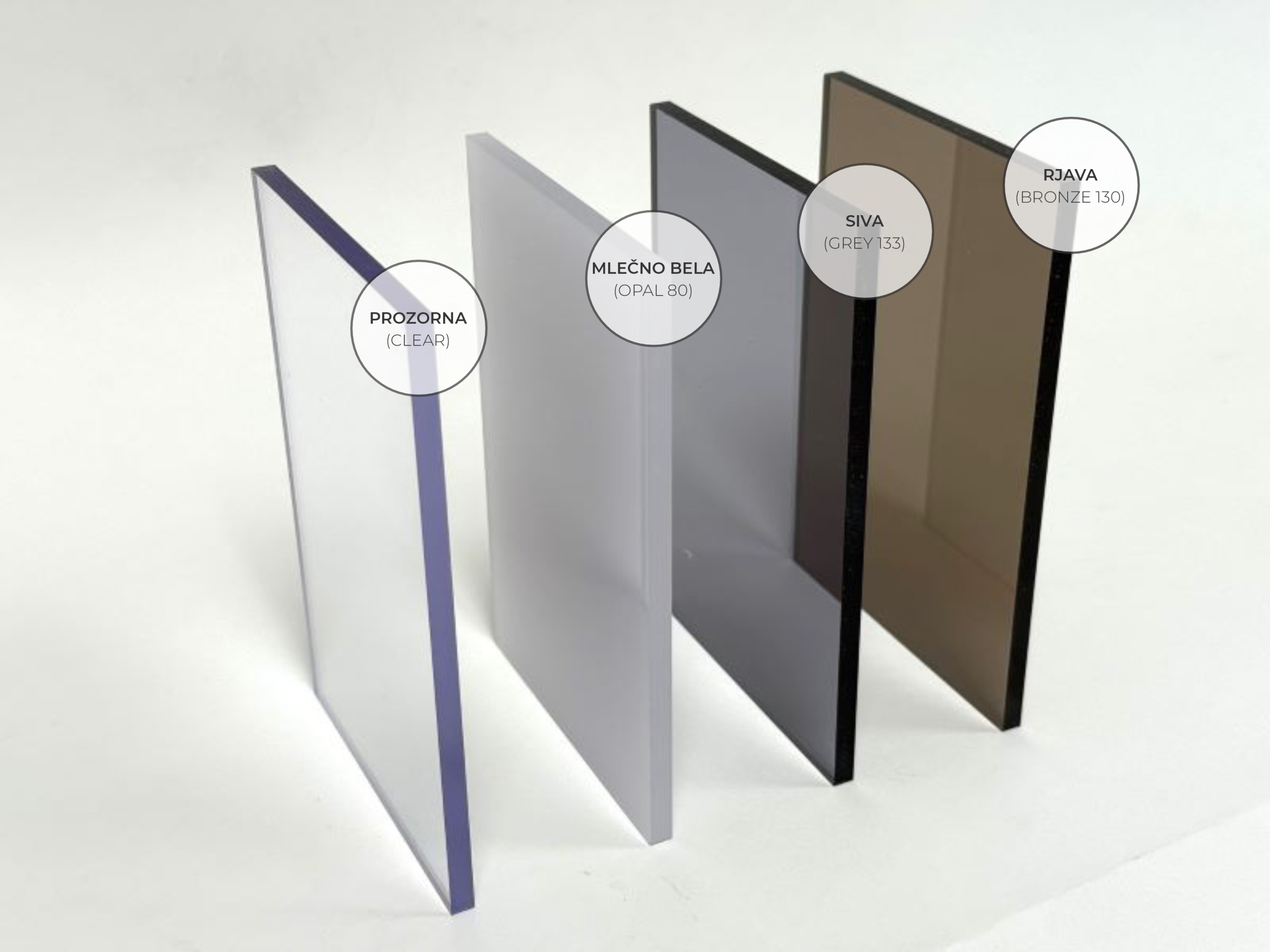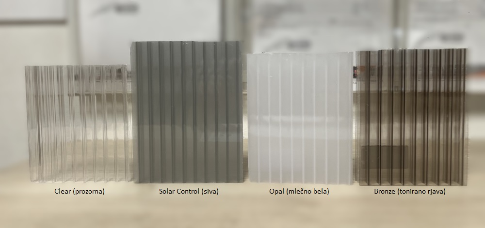 V podjetju Gamplast za izpolnitev vaših individualnih potreb ter želja skrbimo z dobavo različnih debelin (4, 6, 10 in 16 milimetrov), pa tudi dolžin krovnih plošč. Na voljo imate različne barve, kot so klasična prozorna, mlečno bela ter bronz rjava.